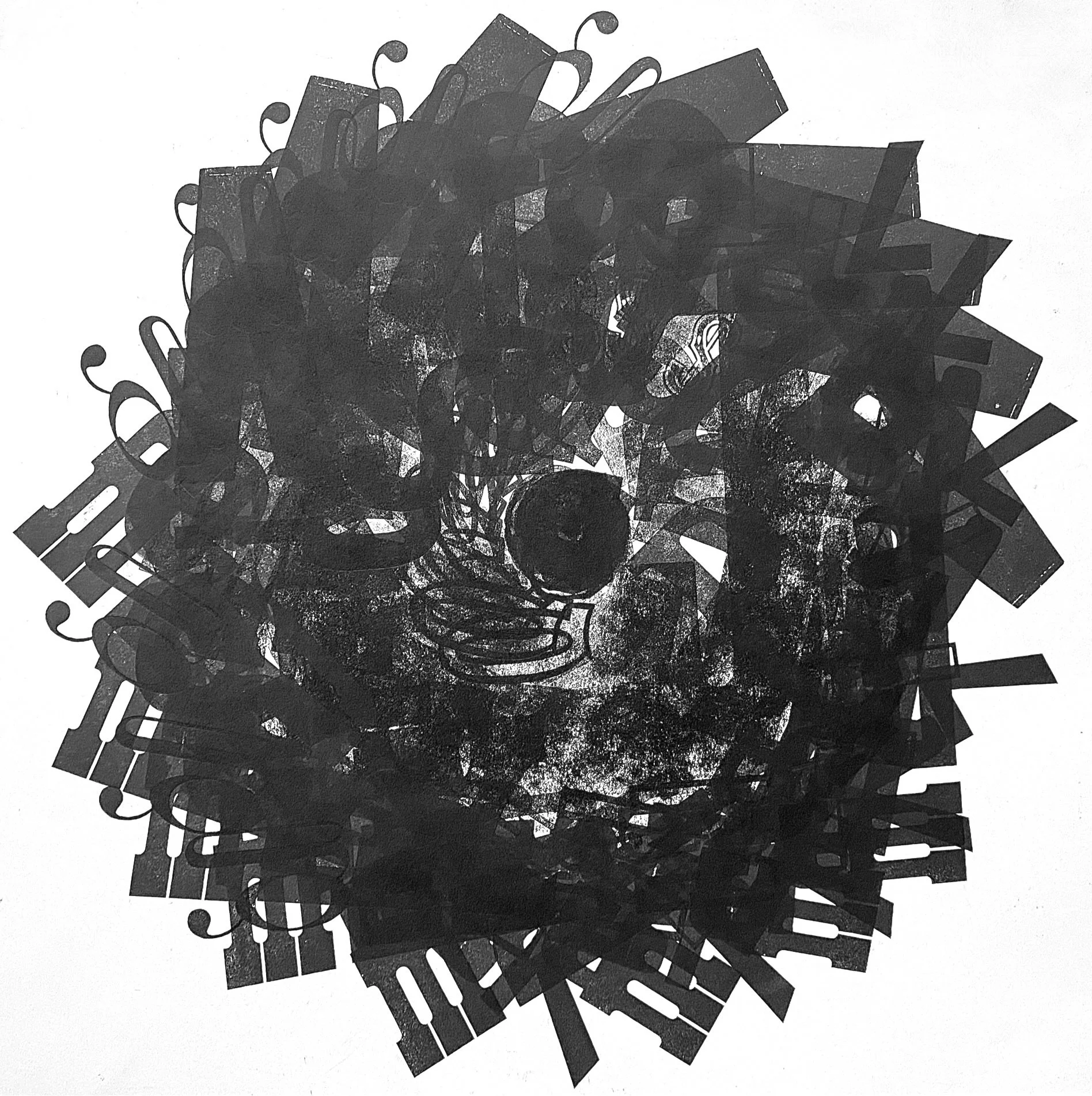 DOS, 13 x 10 in, 2020, Oil paint trace monotype